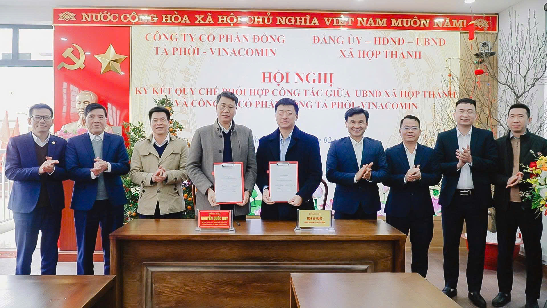 Kết thúc hội nghị, UBND xã Hợp Thành và Công ty Cổ phần Đồng Tả Phời – Vinacomin đã thống nhất ký kết Quy chế phối hợp công tác. Việc ký kết là cơ sở để hai bên tăng cường phối hợp, tạo điều kiện trong quá trình thực hiện nhiệm vụ, bảo đảm tuân thủ đúng quy định của pháp luật, góp phần giữ vững an ninh trật tự, ổn định đời sống Nhân dân và phục vụ phát triển kinh tế – xã hội trên địa bàn.